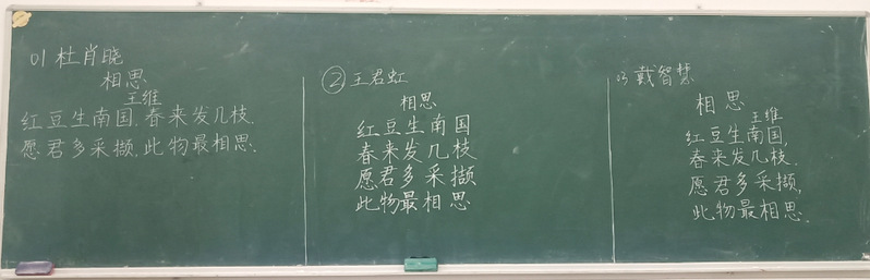 本次比赛以小组为单位进行,一次一组,一组3人,限时4分钟内写完王维的诗歌《相思》。评委老师依据笔法、字法、章法、书写规范、书写效果等5项评分标准进行打分。喻越等6位同学获得一等奖,王泓鑫等11位同学获得二等奖,熊艺等16位同学获得三等奖。