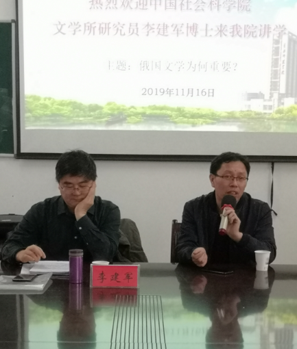 11月15日晚,致远楼501会议室座无虚席,著名文学批评家、中国社科院研究员李建军博士应邀为威廉希尔体育师生做了一场《俄国文学为什么重要》的学术报告。讲座由汤天勇主持。