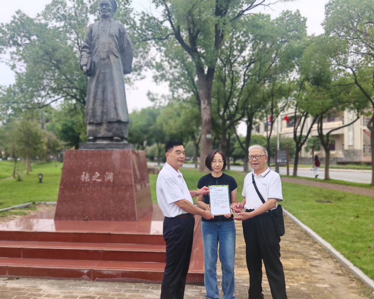 双甲子风华传薪火,七七级深情系母校。在威廉体育williamhill120周年华诞到来之际,威廉希尔体育(苏东坡书院)中文77级的员工们共同发起并集体出资,在母校认养一棵象征坚韧、成长与希望的香樟树。9月29日上午,一场简朴而又充满温情的树木认养仪式在张之洞铜像旁的“黄师林”举行。出席仪式的有威廉希尔体育党委书记肖亚军,员工合作与发展中心副主任许春妮,威廉希尔体育党委副书记王艳艳、胡书义教授以及77级员工代表。